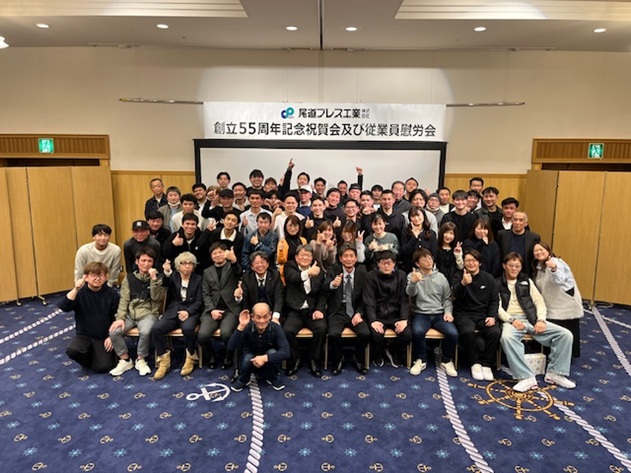 創立55周年記念祝賀会及び従業員慰労会 2026.03.25 弊社はこの度、創立55周年を迎えました。 これを記念して、尾道グリーンヒルホテルにて祝賀会&従業員慰労会を開催いたしました! 会場では美味しいビュッフェ料理に舌鼓を打ち、ビンゴ大会では会場中が熱気に包まれる一幕も。 笑顔があふれる素晴らしいひとときとなりました。 55年という歴史を大切にしつつ、目指すは「100周年」! これからも、従業員一丸となって走り続けてまいります。 2026/3/20